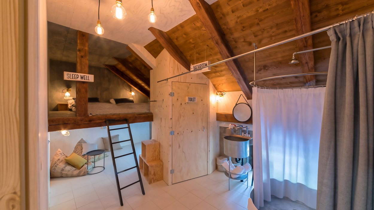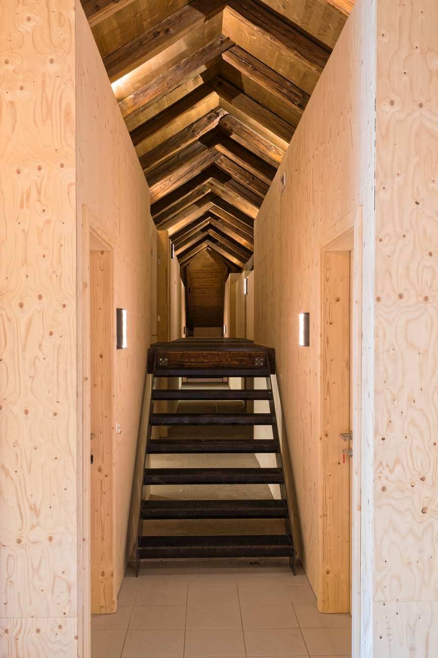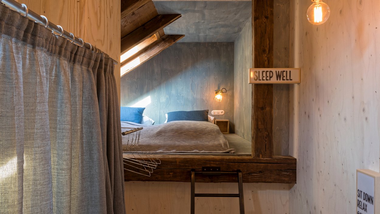 Die Erweiterung des Restaurants "Alter Schlachthof" sieht im Dachgeschoß ein B&B vor, bei dem die Zimmer als Holzboxen in den denkmalgeschützten Dachstuhl eingestellt wurden. Die Zimmer sind nur für einen Kurzaufenthalt gedacht und zurückhaltend elegant eingerichtet. Dabei wurde stets Wert auf die Einhaltung des vorher erstellten Gesamtkonzeptes geachtet, damit auch die Zimmer der Gestaltung folgen, die der Restaurantbereich vorgibt.